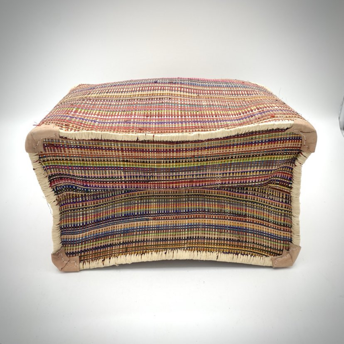 This raffia tote bag features a multicoloured raffia weave.