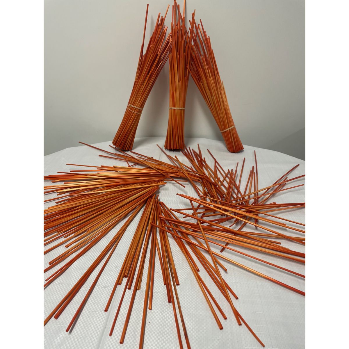 Cette paille de seigle orange brossée de qualité supérieure est cultivé en France par un agriculteur spécialisé. C'est un matériau polyvalent utilisé depuis des siècles dans l'art de la marqueterie de paille. Cette technique consiste à découper de fines bandes de paille de seigle et à les coller sur une surface pour créer des motifs et des dessins complexes.