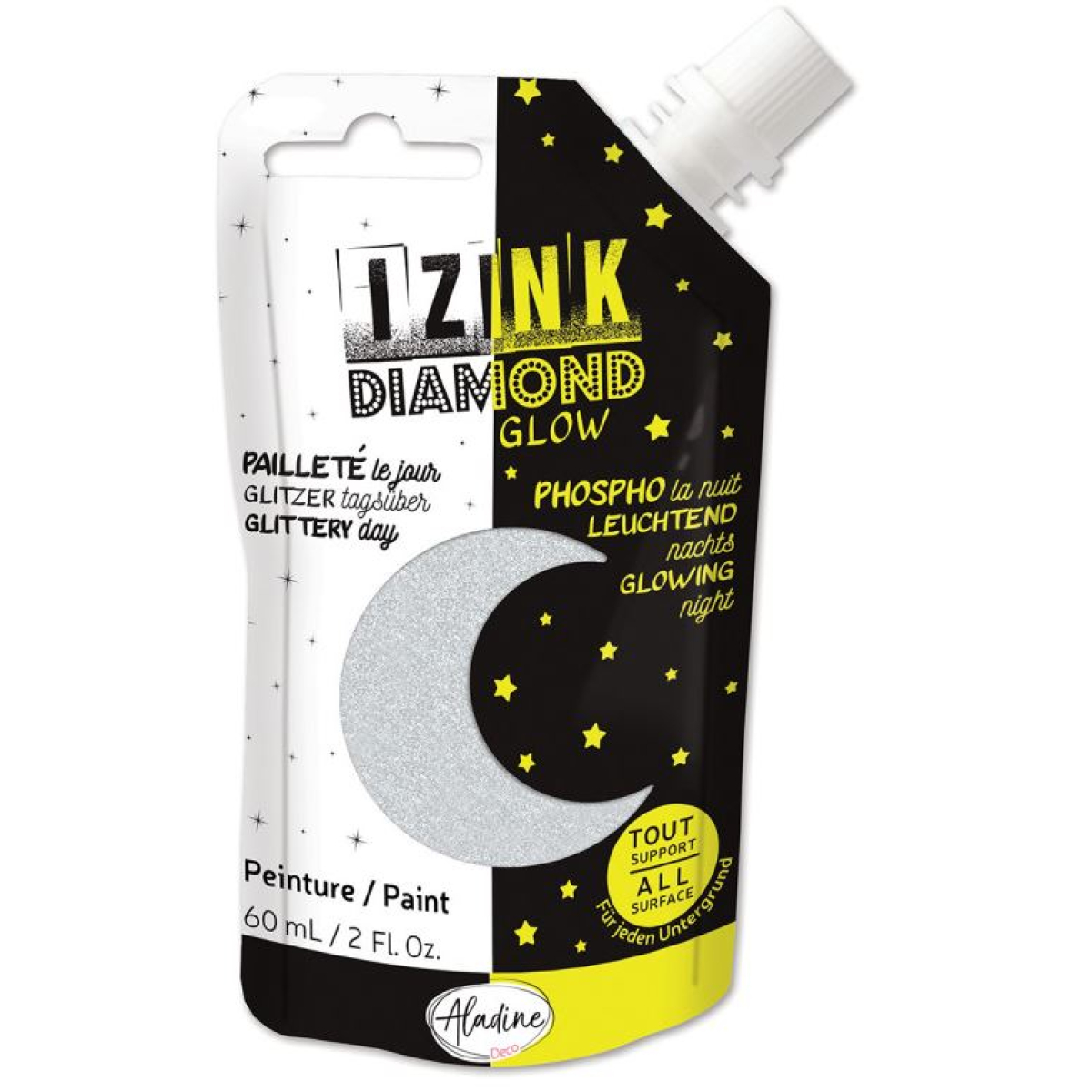 Peinture pailletée et phosphorescente izink argent
