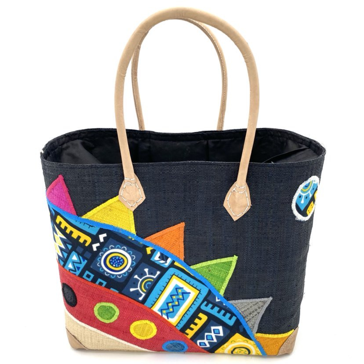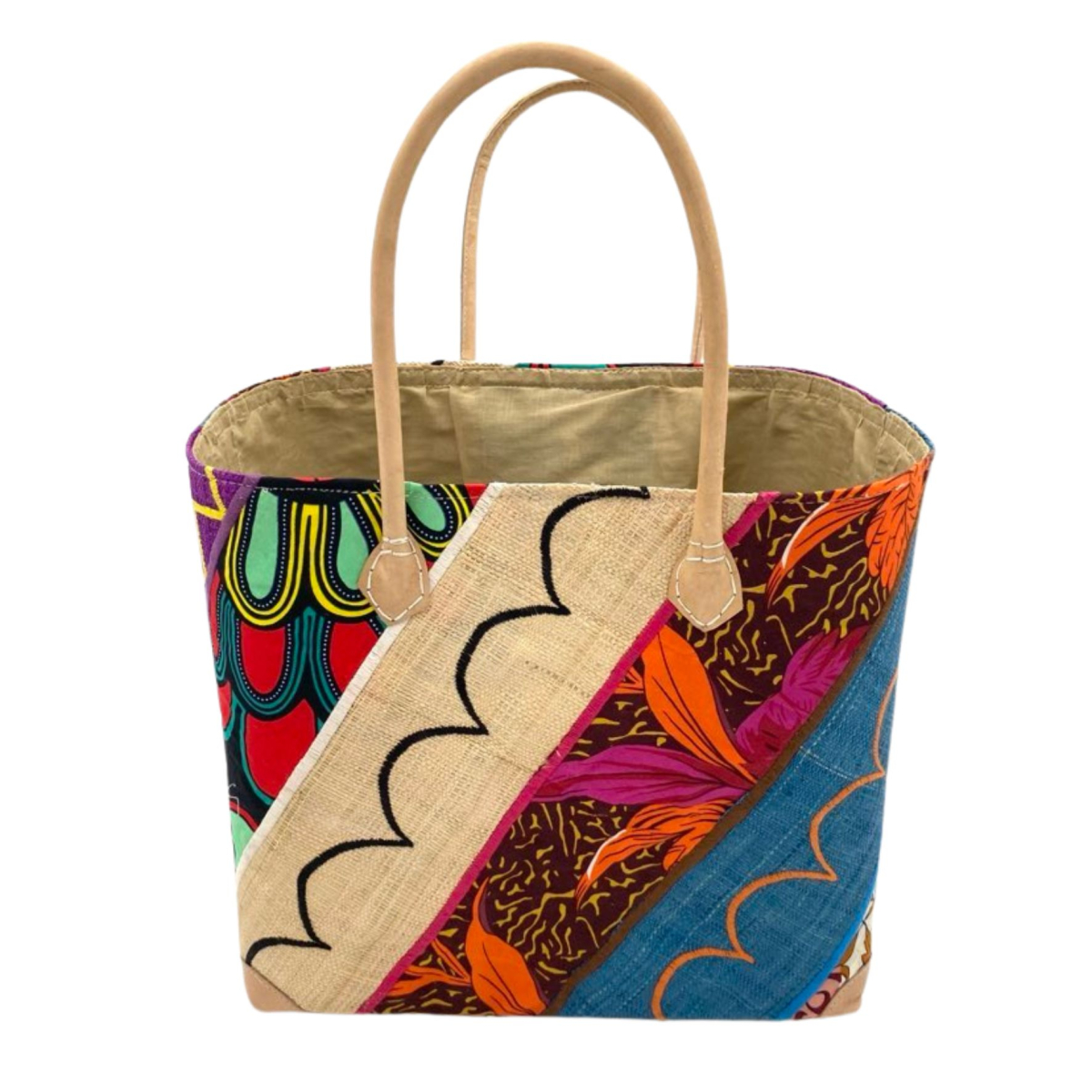 Sac cabas unique est entièrement confectionné en raphia naturel, avec des motifs brodés à la main, apportant une touche artisanale et authentique.