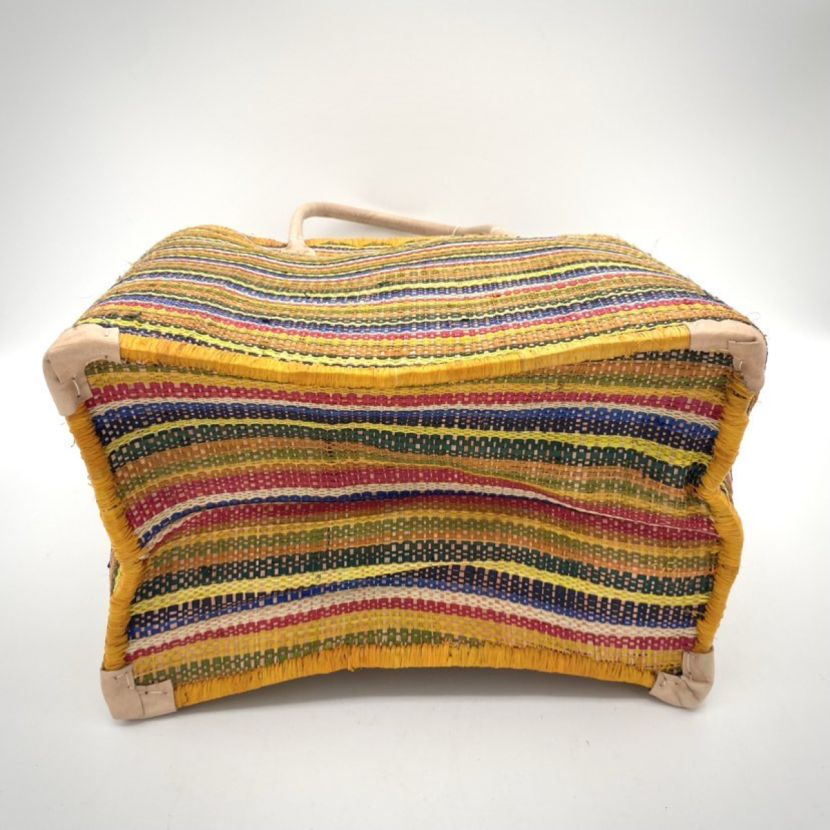 Ce cabas en raphia avec tissage multicolore en raphia.