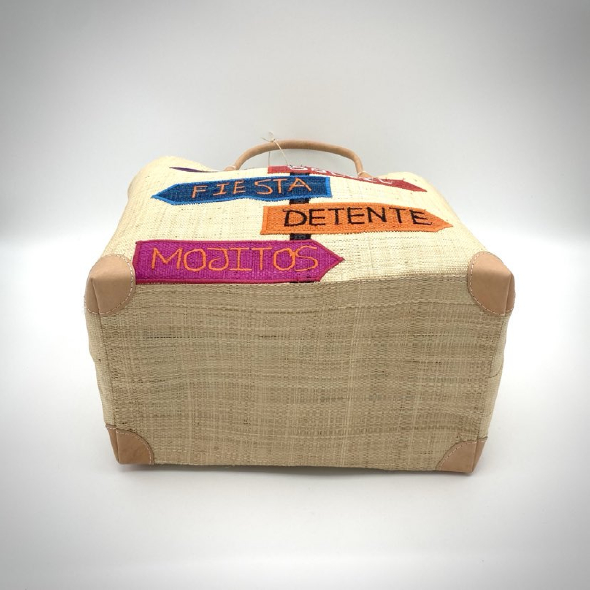 Cabas 100% "été" en raphia ou rabane avec son panneau de destinations cool ambiancé sur le thème de l'été à la plage apporte un côté chic et détendu grâce à son motif tissé.
